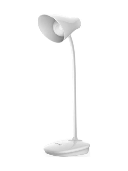 Επαναφορτιζόμενο φωτιστικό γραφείου με ενσωματωμένο LED και άκαμπτο βραχίονα, σε 3 διαφορετικά χρώματα. Άσπρο, γαλάζιο ή ροζ. Ισχύς: 4-5W. Διαθέτει dimmer για ρύθμιση της έντασης.
