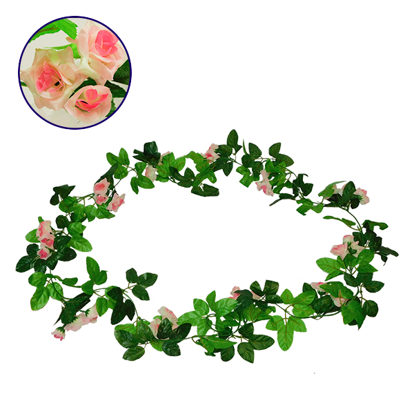 GloboStar® 09018 Τεχνητό Κρεμαστό Φυτό Διακοσμητική Γιρλάντα Μήκους 2.2 μέτρων με 33 X Μικρά Τριαντάφυλλα Ροζ Λευκά