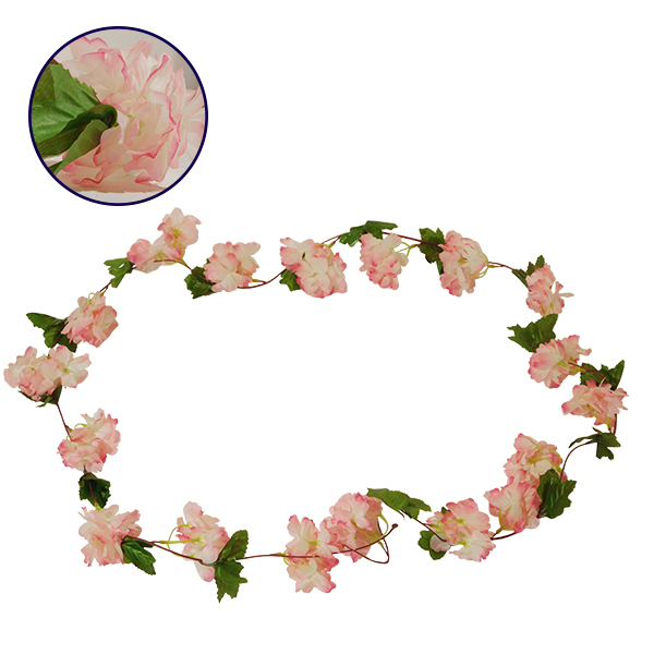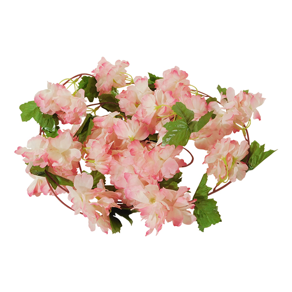 GloboStar® 09024 Τεχνητό Κρεμαστό Φυτό Διακοσμητική Γιρλάντα Μήκους 2.2 μέτρων με 18 X Άνθη Κερασιάς Ροζ Σομόν