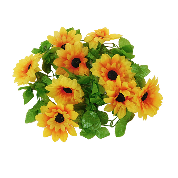 GloboStar® 09029 Τεχνητό Κρεμαστό Φυτό Διακοσμητική Γιρλάντα Μήκους 2.2 μέτρων με 10 X Μεγάλα Ηλιοτρόπια Κίτρινα