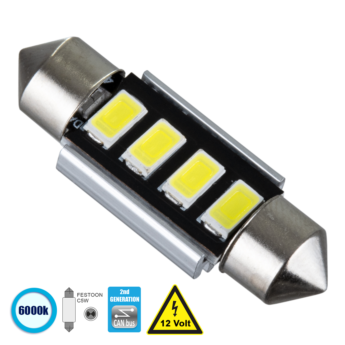 GloboStar® C5W 81312 Λάμπα Αυτοκίνητου 36mm FESTOON 2nd Generation Can-Bus Series LED 4 SMD 5630 3W 450lm 120° DC 12V IP20 Ψυχρό Λευκό 6000K