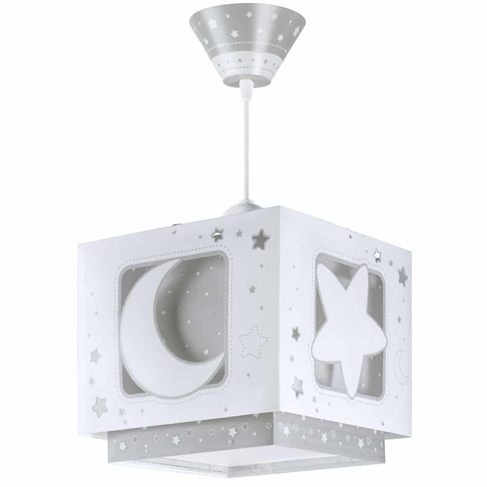 Καλωσορίστε το παιδί σας σε ένα δωμάτιο πλημμυρισμένο από μαγεία με αυτό το παιδικό φωτιστικό οροφής με θέμα τα ουράνια σώματα κατάλληλο για γενικό φωτισμό. Είναι διπλού τοιχώματος με διάφανο το εξωτερικό του και μαγικά φωσφορίζοντα μέρη στο σκοτάδι. Κατασκευασμένο από συνθετικό υλικό αντοχής πολυπροπυλενίου και ανεξίτηλες εκτυπώσεις. Παρέχεται διαχυτής φωτός που προστατεύει τα μάτια των παιδιών μικρότερων ηλικιών αλλά και προσφέρει ομοιόμορφο φωτισμό σε κάθε παιδικό δωμάτιο. Το MoonLight Gray κρεμαστό παιδικό φωτιστικό οροφής συμπληρώνει τα υπόλοιπα φωτιστικά της συλλογής, τοποθετείται εύκολα και είναι κατασκευασμένο εξ ολοκλήρου στην Ευρώπη.